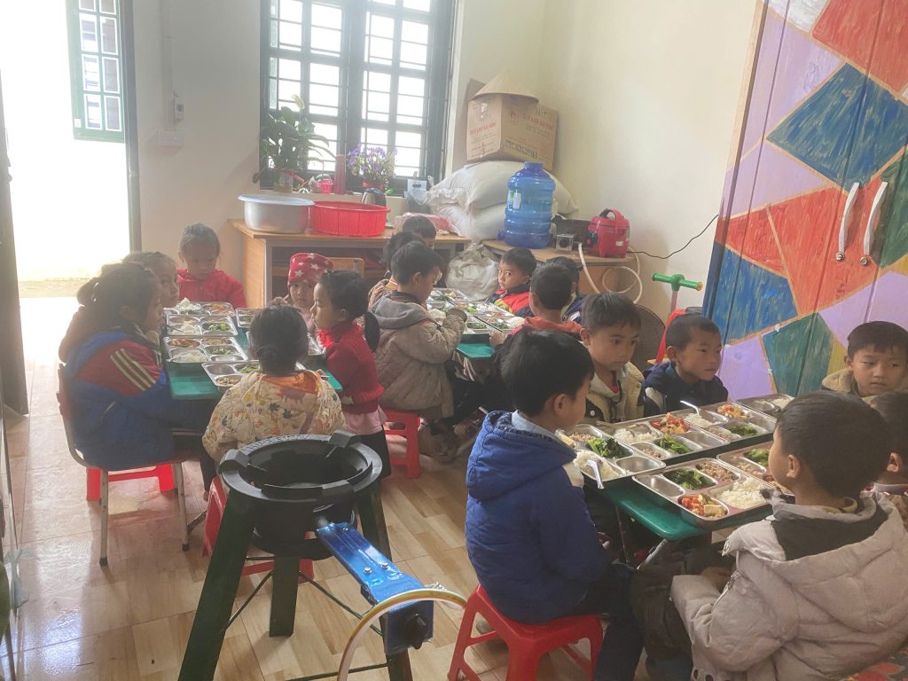 - Điểm trường đã được trang bị xoong nồi, chảo, khay cơm, đũa, thìa cho học sinh.